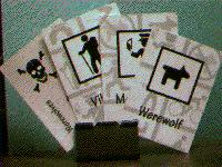 Way, way back in 1997, Zarf introduced me (and most of his other friends) to the "Werewolves" game. Also known as "Werewolf" or "Mafia", this is a game of paranoia and betrayal. It's sort of a short-term role-playing game, but there are no dice. It doesn't actually need cards, but most people use cards to assign the roles each player will take.